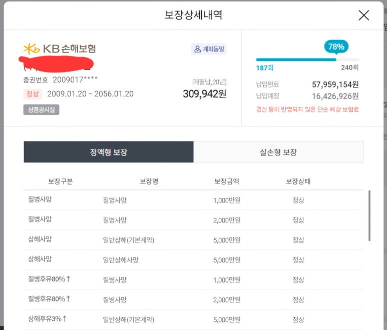 현재 매월 나가는 보험은